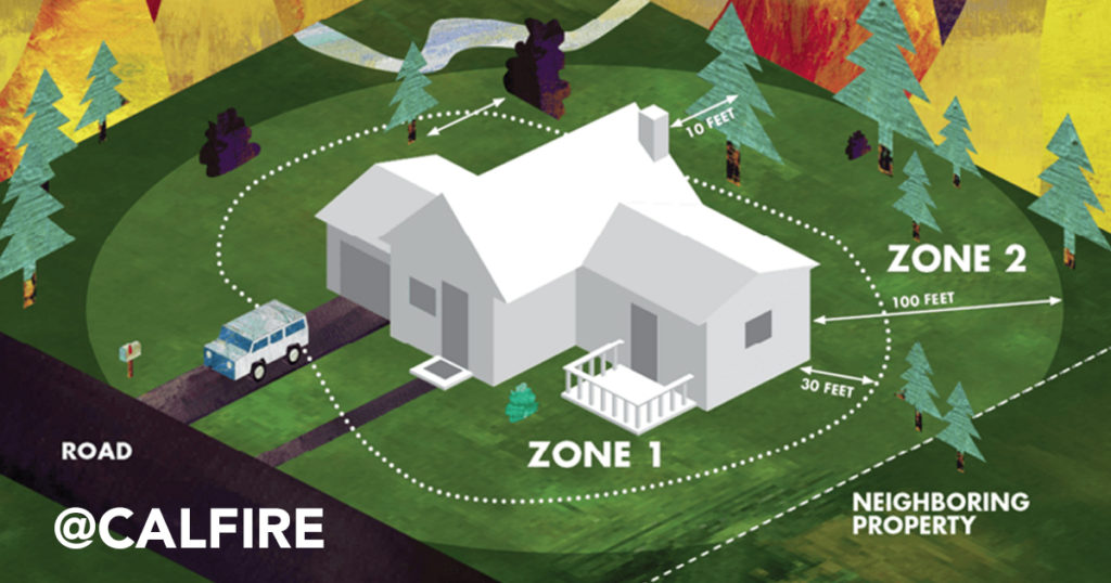 CAL FIRE considers “Ember Zone 0” (0–5 feet) as the most critical area for wildfire prevention since 90% of home ignitions are caused by flying embers. This area should be designed with no wood mulch, combustible siding, or flammable plants. Establish three critical zones that slow or stop wildfire progression. These zones include: